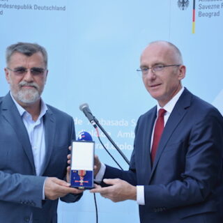 Beograd, 23. 8. 2021. – Danas je u rezidenciji ambasadora Savezne Republike Nemačke orden Saveznog krsta za zasluge na lenti dodeljen Veranu Matiću.