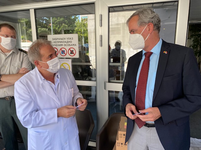 Tokom današnje posete KBC „Zemun“, predstavnike ambasade i belgijskih kompanija dočekao je direktor te ustanove prof. dr Dragoš Stojanović, sa kojim su imali kratku razmenu o trenutnoj zdravstvenoj situaciji. „Veoma nam je drago da postoje donatori koji u ovom trenutku, kada se Srbija i ostatak sveta zajedničkim snagama bore protiv novog virusa koji predstavlja globalnu opasnost, prepoznaju i cene trud i rad svih nas, zdravstvenih radnika. Izuzetna nam je čast kada svetski poznate kompanije prepoznavaju napor koji ulažemo u očuvanju zdravlja ljudi iz cele Srbije. Zbog toga smo im posebno zahvalni na donaciji špric pumpi koje nam olakšava lečenje i negu onih kojima je pomoć potrebna“, izjavio je prof. dr Dragoš Stojanović, direktor Kliničko – bolničkog centra „Zemun“.